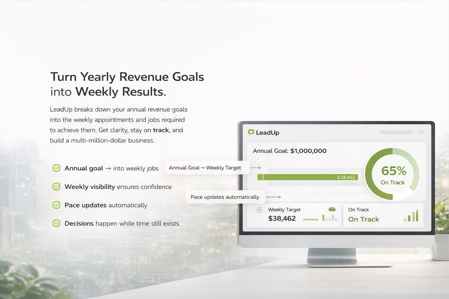 LeadUp is a revenue accountability system built for contractors who want to know—every week—if they’re actually on track.
